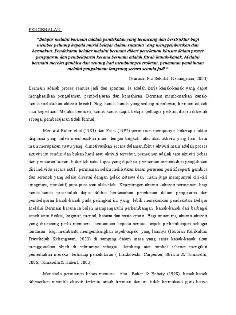 Antara kelebihannya ialah dari segi meningkatkan tahap. Soalan Kajian Kajian ini dijalankan untuk membantu menjawab soalan-soalan berikut. Pengenalan Bermain merupakan aktiviti semulajadi kanak-kanak Freud1920.
